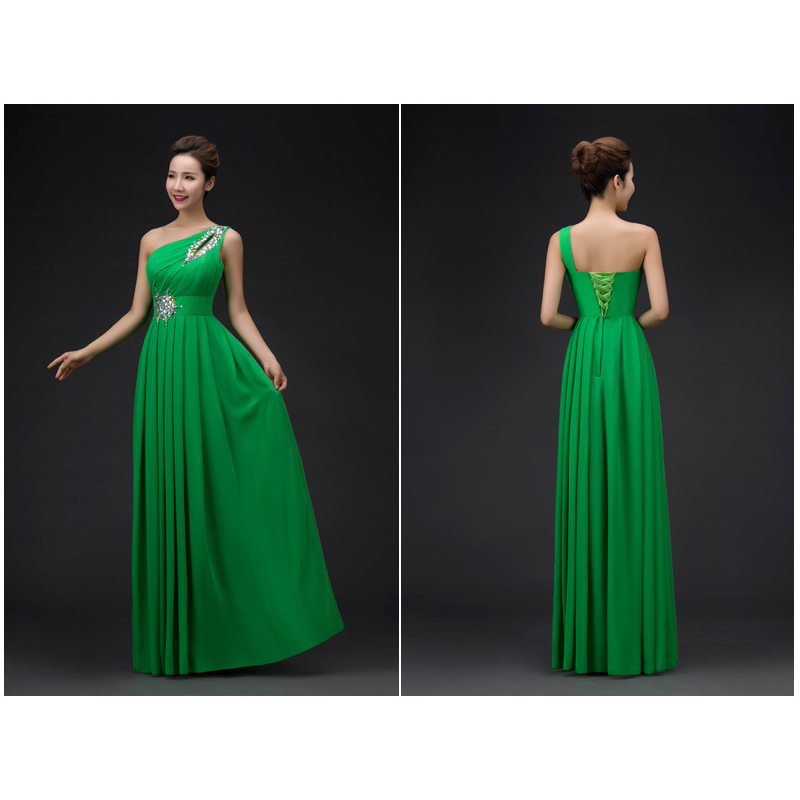 This stunning bridesmaid dress features a one-shoulder design that adds a touch of elegance and sophistication. The chiffon fabric flows gracefully, creating a soft and romantic look. The long length enhances the overall elegance, making it perfect for wedding parties or formal events. With its flattering silhouette and stylish details, this dress will make any bridesmaid feel beautiful and confident.