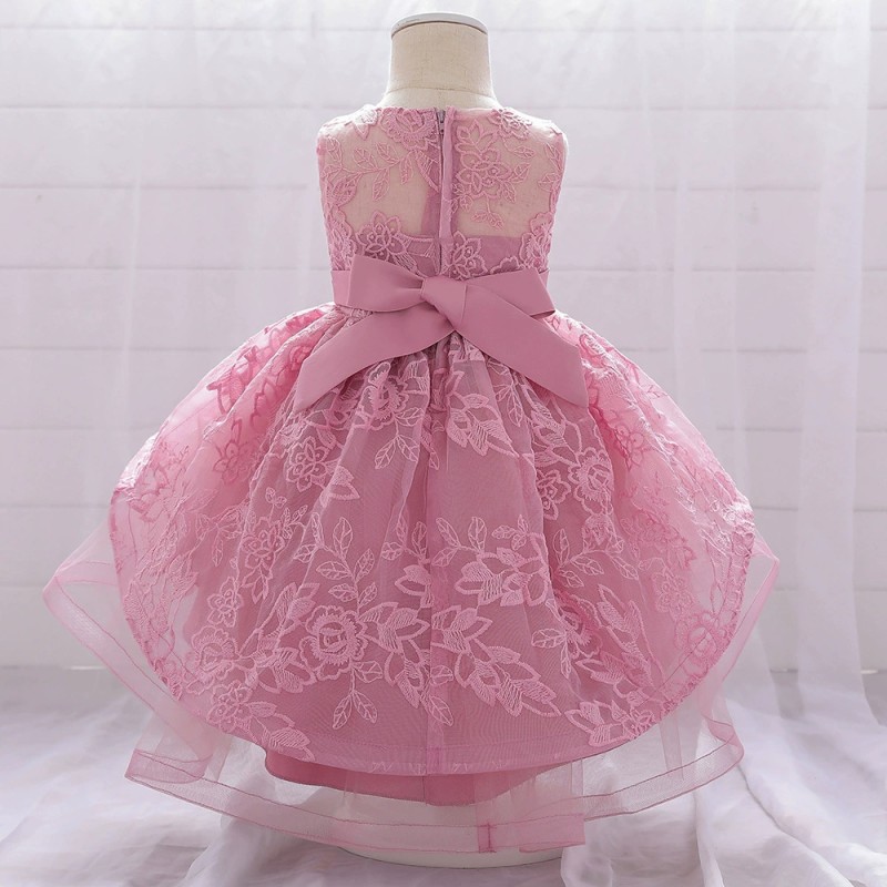 Elegant Pink Lace Flower Girl Dress with Bow AZ005PK