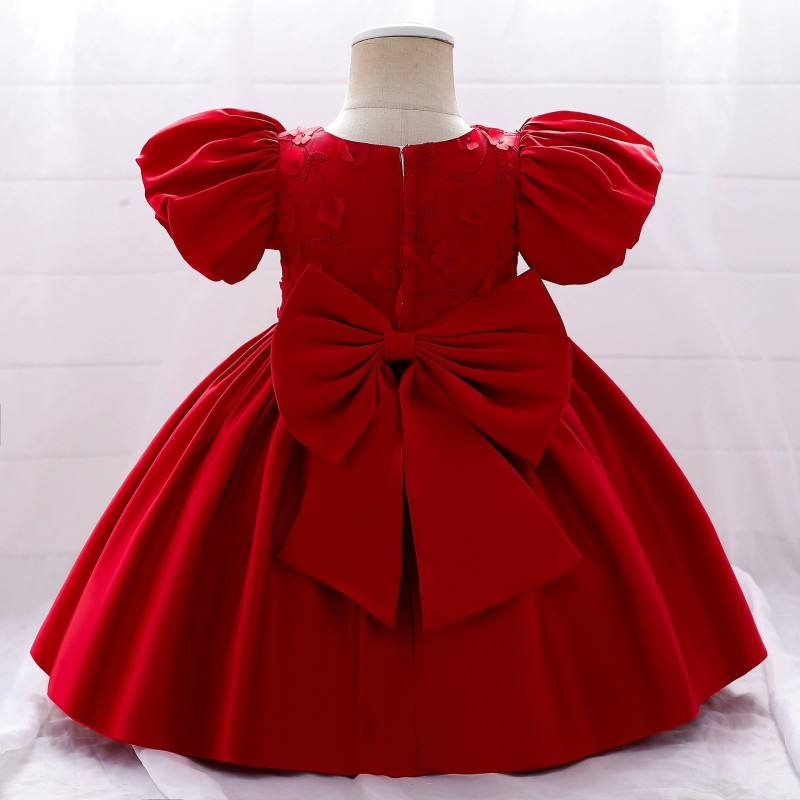 O-Neck Puff Sleeve Flower Girl Dress AZ004RD