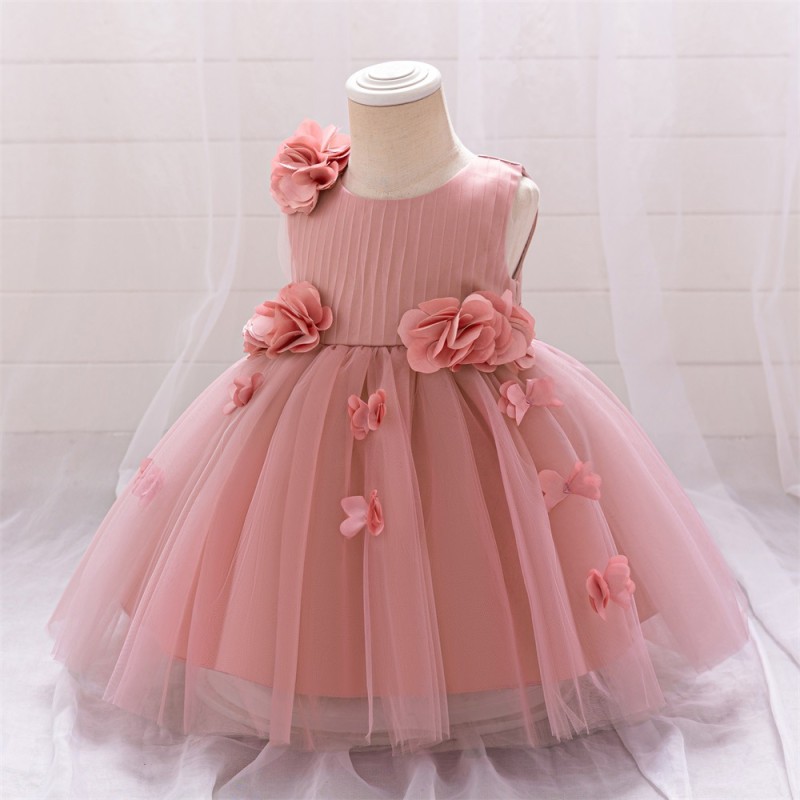This delightful party dress for girls is truly charming. It features beautiful flower decorations that add a touch of nature's beauty and femininity. The dress likely comes in a variety of colors and styles, with a flowing skirt and a comfortable fit, making it perfect for special occasions like birthday parties, weddings, or family gatherings. The flower details make it stand out and give it a sweet and elegant look that little girls will love.