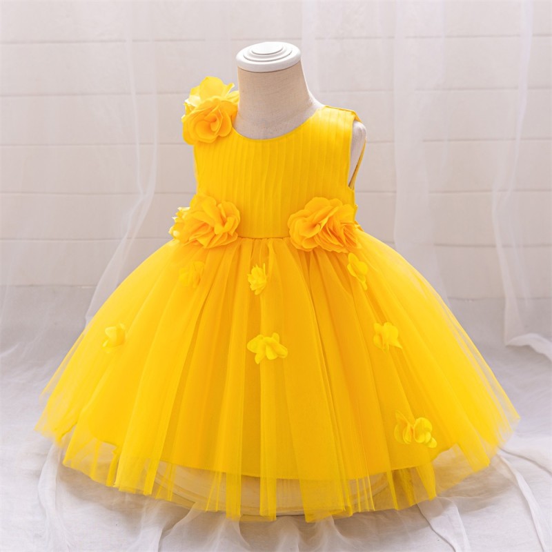 This delightful party dress for girls is truly charming. It features beautiful flower decorations that add a touch of nature's beauty and femininity. The dress likely comes in a variety of colors and styles, with a flowing skirt and a comfortable fit, making it perfect for special occasions like birthday parties, weddings, or family gatherings. The flower details make it stand out and give it a sweet and elegant look that little girls will love.