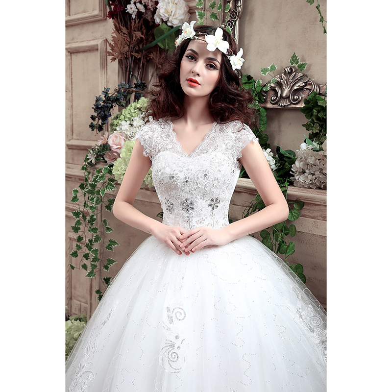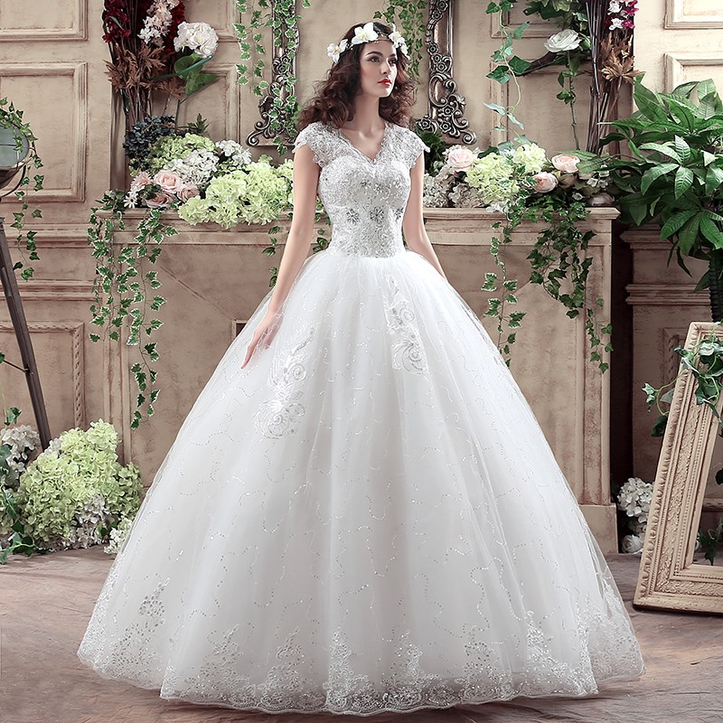 Cap Sleeve V-neck Ball Gown Wedding Dress 2024 Cheap Plus Size Dresses XN084