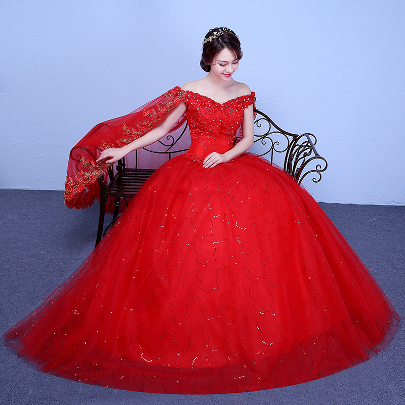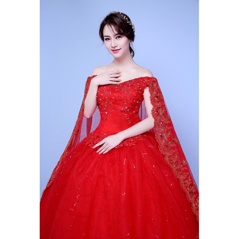 Sweetheart Lace Wedding Dress with Short Sleeve 2025 Color Red New Ball Gown Bridal Dress XN094RD